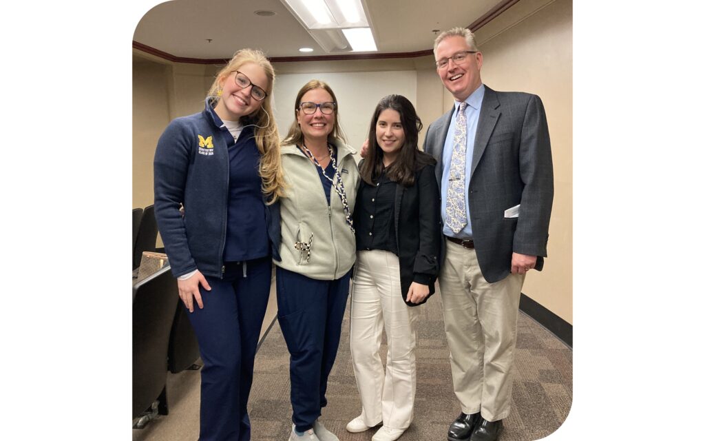 UMich’s Macey Palmer (DS2), Andrea Pobocik, D.D.S., Ph.D., M.S. from the University of Michigan,Professor and Assistant Director of Research, Eric Krukonis, Ph.D., and Clinical Assistant Professor Manuela Spinola, D.D.S., M.Sc., Ph.D.